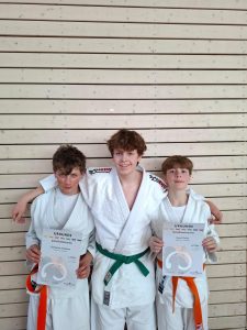 Ben und Henri starteten in der u15 zu ihrem ersten offiziellen Wettkampf. Beide zeigten schöne Kämpfe, die teilweise auch fast über die vollen 3 min gingen. Ben konnte eine Begegnung souverän für sich entscheiden und errang den 2. Platz in der Gewichtsklasse bis 60,6 kg. Henri musste sich trotz starker Leistung seinen Gegnern geschlagen geben und wurde Vierter in der Gewichtsklasse bis 48,9 kg. Auch Jannes stand nach vielen Jahren das erste Mal wieder auf einer Wettkampfmatte und musste als jüngster Jahrgang in der u18 antreten. Dadurch hatte er es mit sehr viel größeren und kräftigeren Gegnern zu tun, zeigte sich aber kämpferisch und hat mit schönen Aktionen seine Gegner unter Druck gesetzt. Am Ende wurde es ebenfalls ein 4. Platz.